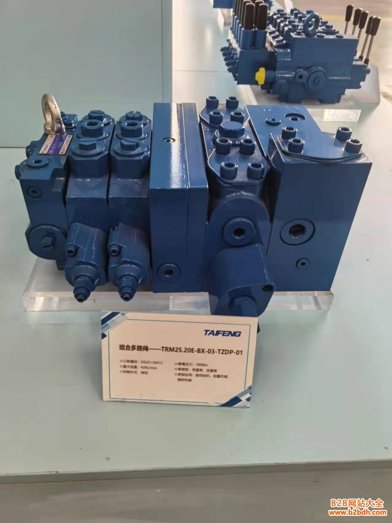 多路阀系列 泰丰智能 工程机械液压元件 TM412系列负载敏感型多路阀 通径: 2 压力:泵侧350bar 执行元件侧420bar 流量: 120L/min 主要特点: .片式结构可按需灵活组合 .负载压力补偿,与负载压力无关的流量分配 液压先导控制,电比例(或开关)控制 开中心,用于定量泵系统 闭中心,用于变量泵系统 -次及二次安全阀(过载且带补油功能) LS溢流阀(每联均有LS溢流阀选项,可分别限定油口的工作压力)控制,微动性好,舒适的操纵性 .重复精度高,滞环小 主要应用领域1举例: 高空作业车,混凝土泵车,伸缩臂叉车,农业机械,煤矿机械。 订货型号: TM412- B「xE24-08- xX)-01① ②③④⑤ ⑥⑦