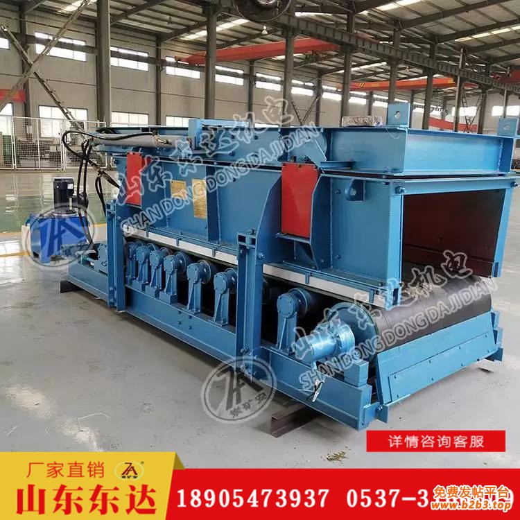 给料机主要由漏斗架、防溃仓闸门、箱体、改向滚筒、无缓冲托辊、缓冲托辊、主动滚筒、输送带、驱动装置、底盘等部件组成,其中防溃仓闸门为核心部件,该闸门具有如下特征: