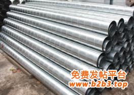 白铁螺旋风管是用金属带料卷制成螺旋形咬缝的薄壁管,圆形,无焊接,不漏气,不漏水,多用于送风和散装物料输送,代替传统的白铁管(即手工咬缝铁管)。是风管的一种,全机制,直管无需手工敲打。送风,包括通气,如送鲜风和排气,这个范围很广,如工厂车间,生产场地空气,由于气体产生需要排出室外,又需要把室外空气输送至室内。这时就要使用流量大而压力小的空气输送管道,螺旋风管就适用,一般情况下使用镀锌铁管,有腐蚀性及特别潮湿场所使用不锈钢管。